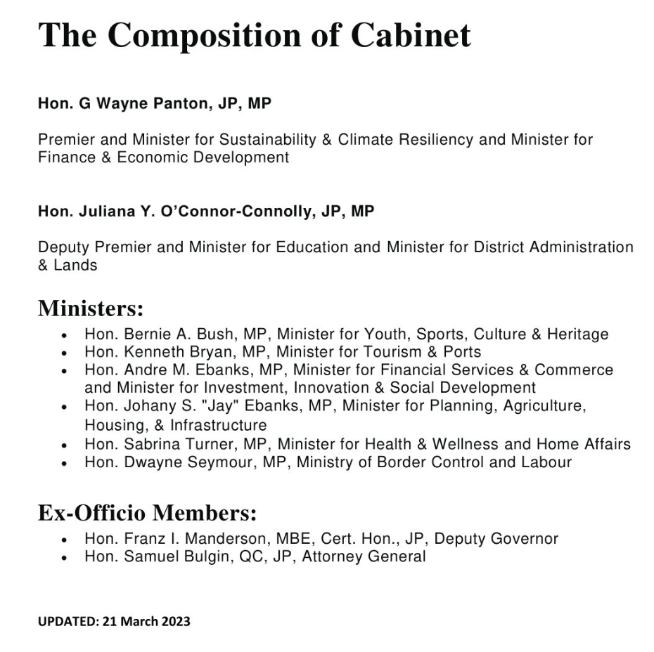 The Cayman Islands Premier Hon. Wayne Panton has announced several changes to the Ministers of Cabinet. Christopher Saunders, MP, will no longer serve in Cabinet and the Premier will take on the additional responsibility for the Ministry of Finance and Economic Development.