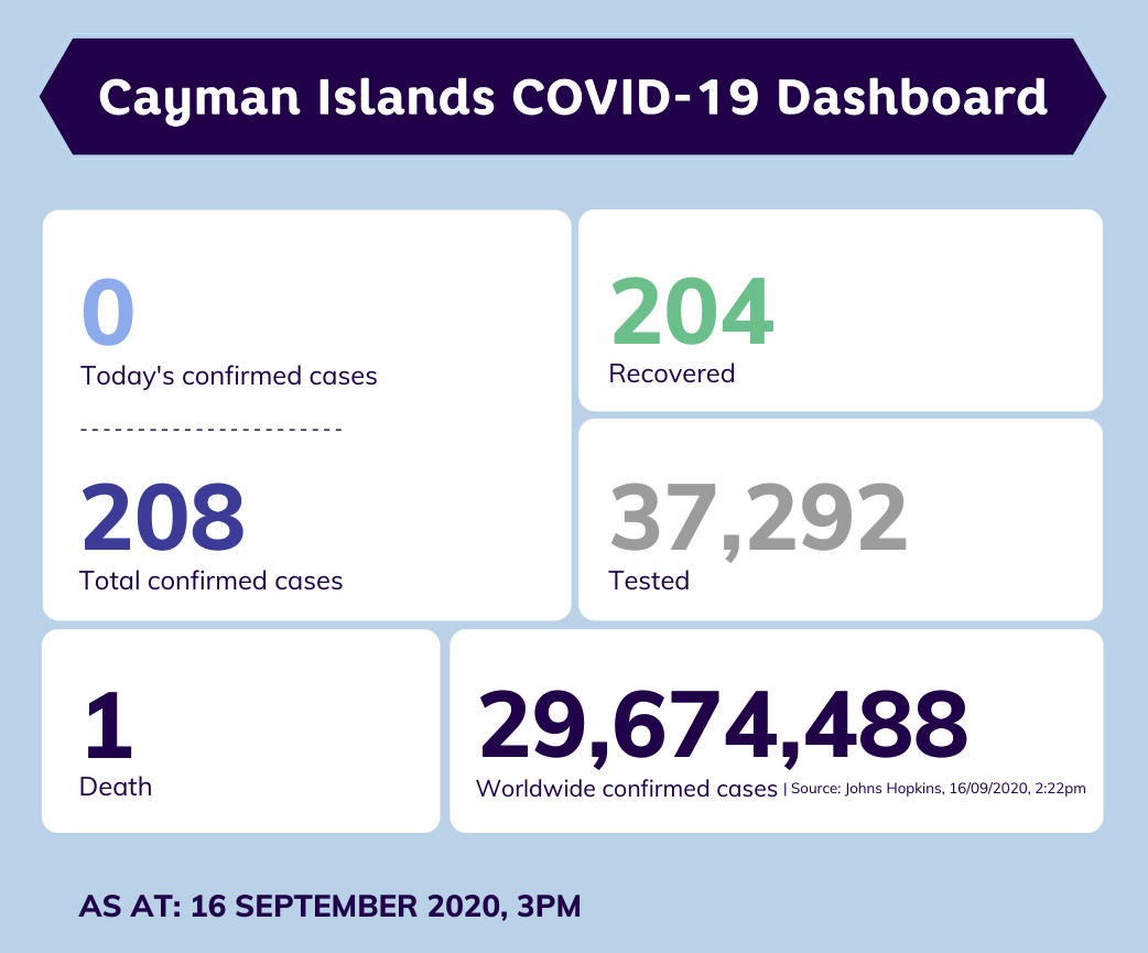 Cayman: COVID-19 Testing Update 16 September 2020 – NO new positives.