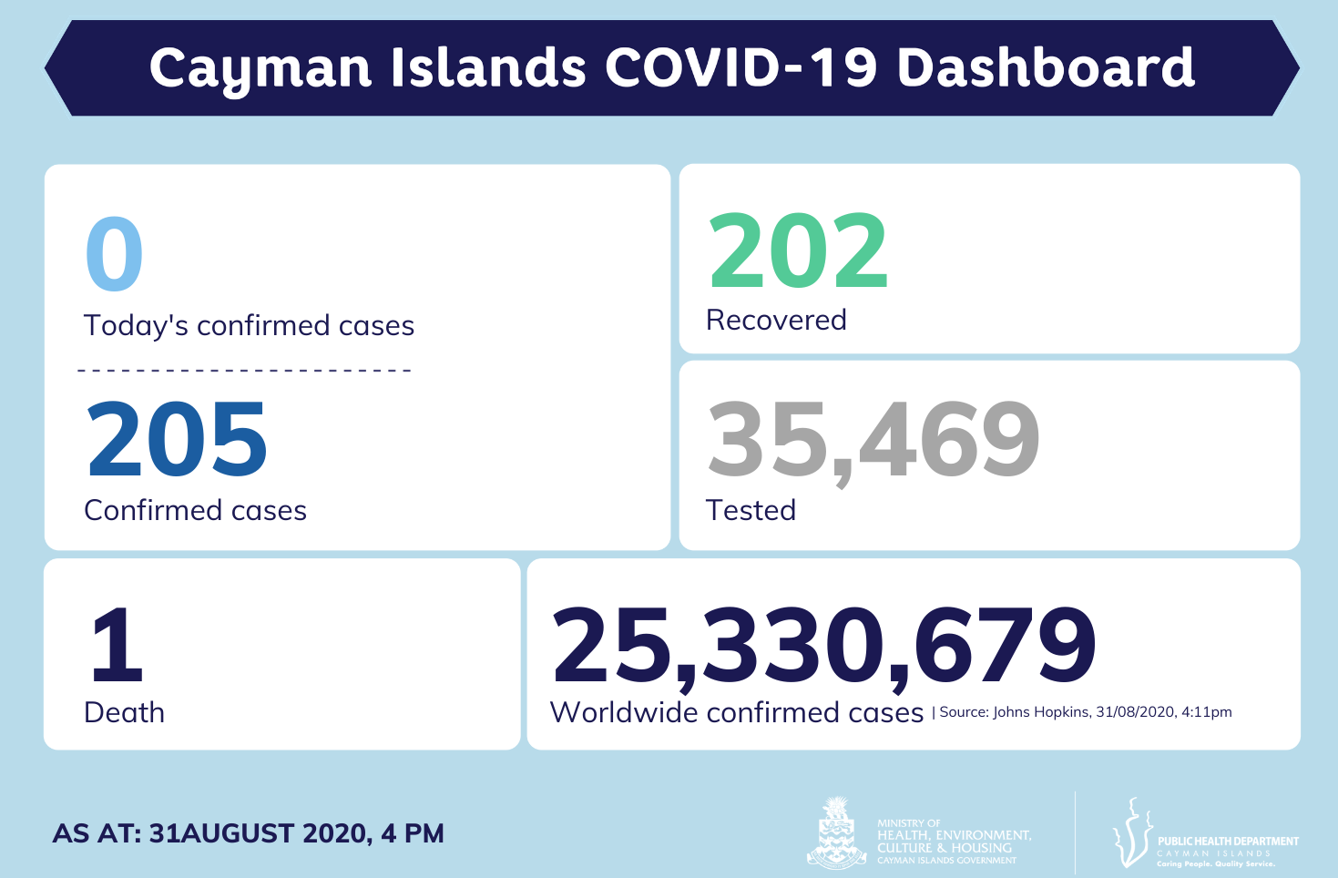Cayman: COVID-19 Testing Update 31 August 2020 – NO new positives