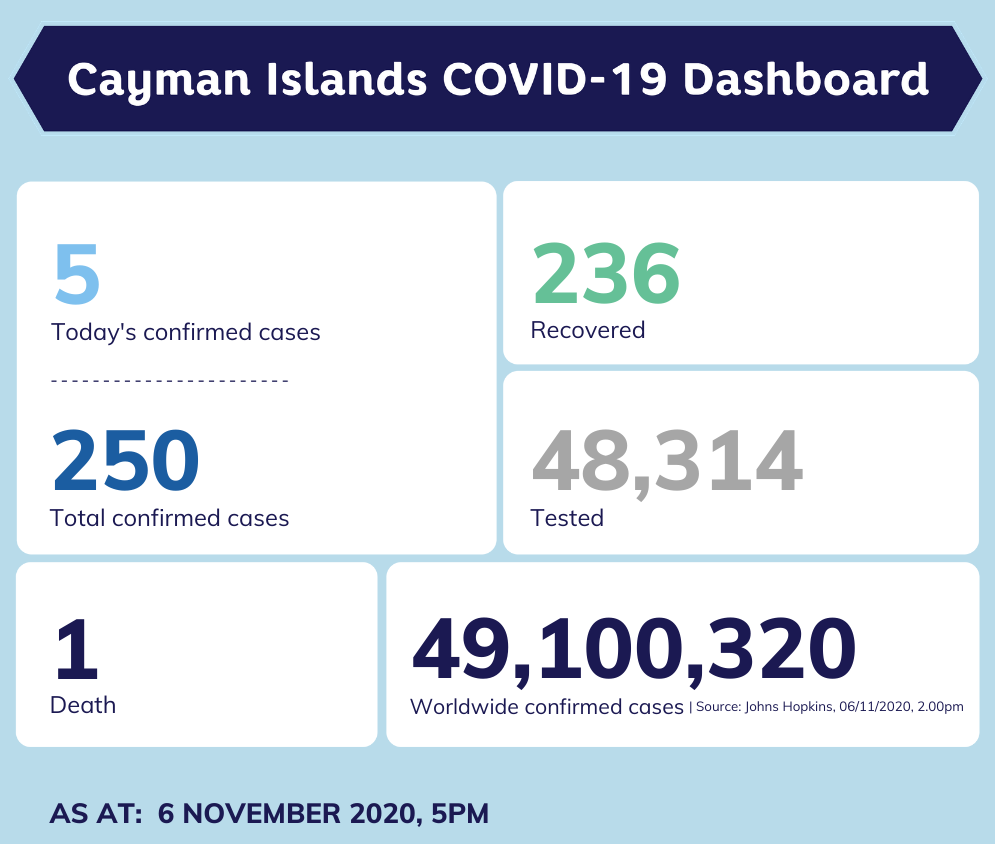 Cayman: COVID-19 Testing Update 6 November 2020 – FIVE NEW positives