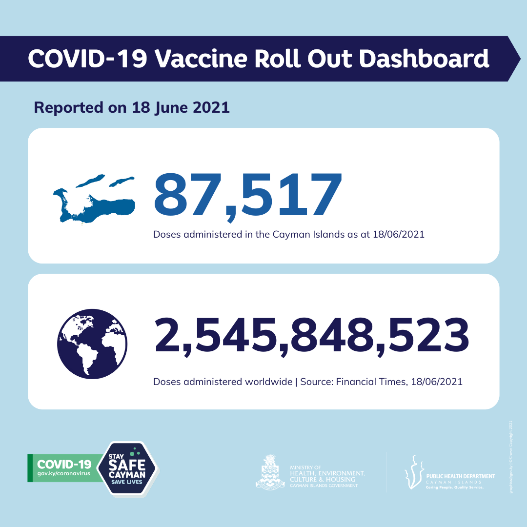 Cayman: COVID-19 Update 18 June 2021, SEVEN NEW Positives, 87,517 vaccinations given