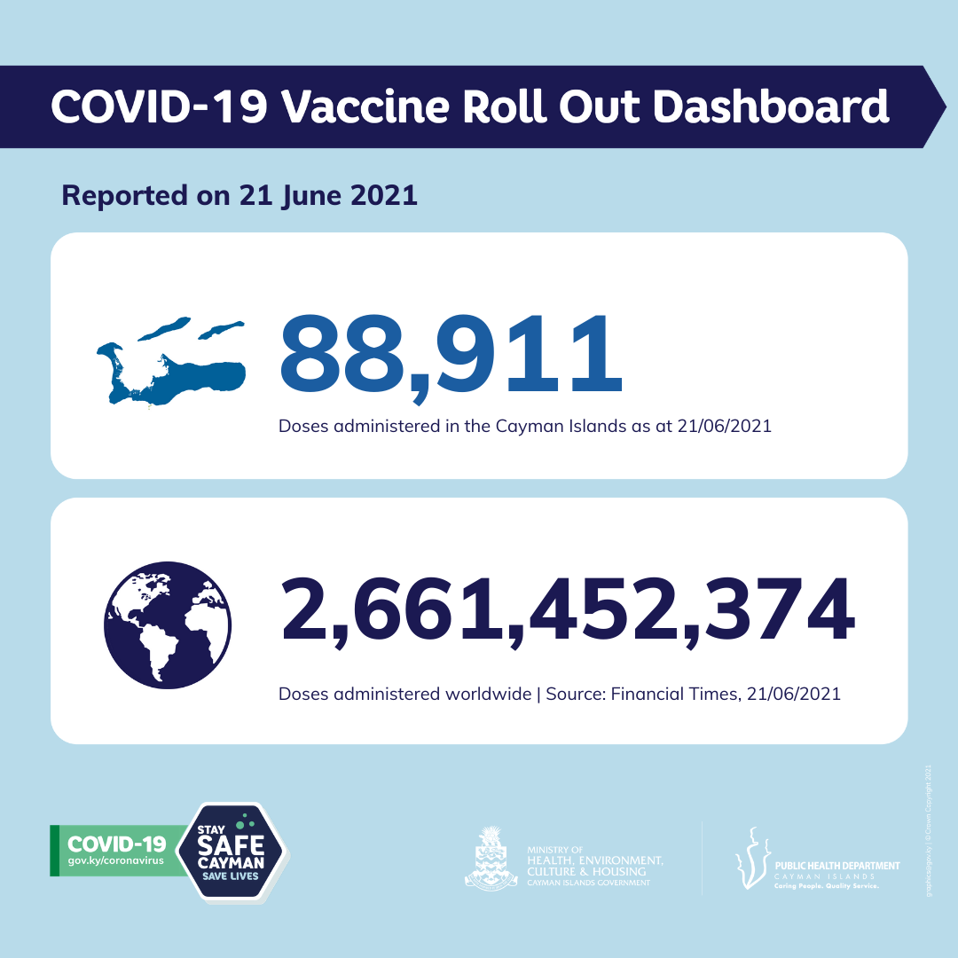 Cayman: COVID-19 Update 21 June 2021, ONE NEW positive, 88,911 total COVID-19 vaccinations given