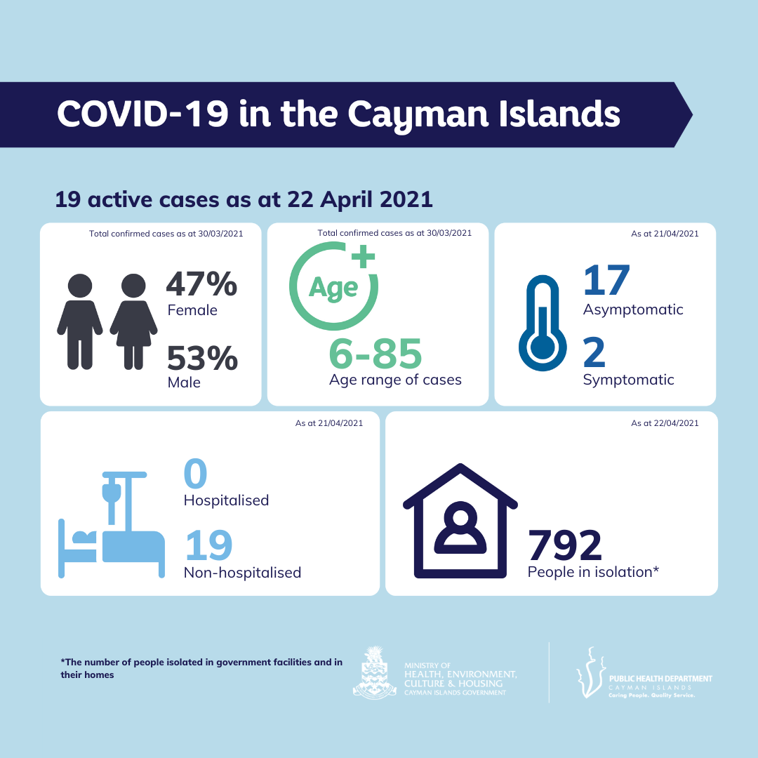 Cayman: COVID-19 Update 22 April 2021, NO new positives, 63,838 vaccines administered
