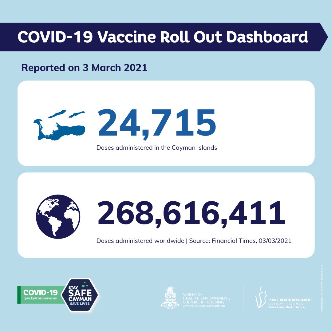 Cayman: COVID-19 Update 3 March 2021 – ONE NEW Positive, 24,715 vaccines administered