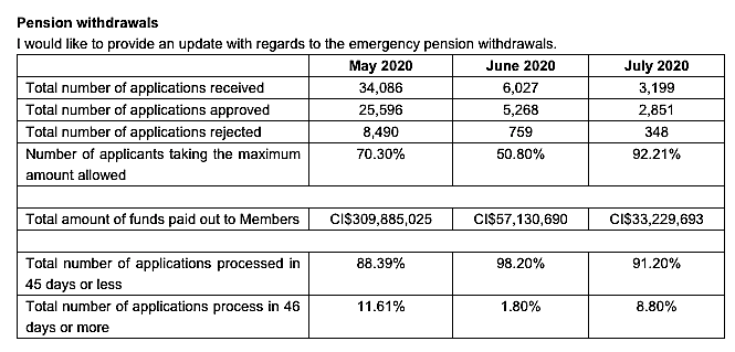 - The total number of applications for pension withdrawals were 34,086 in May, 6,027 in June and 3,199 in July. The total amount paid out is just over $400 million.
