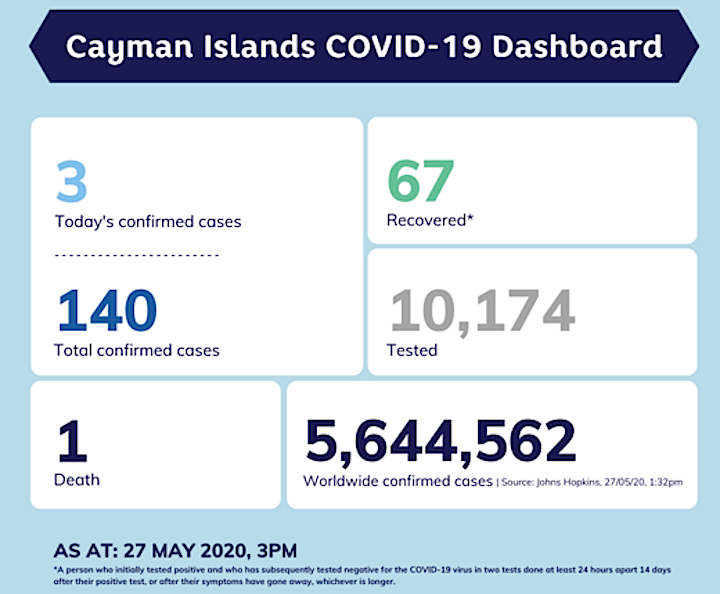 Cayman: COVID-19 Update for Wednesday, 27 May 2020 – 3 more positives