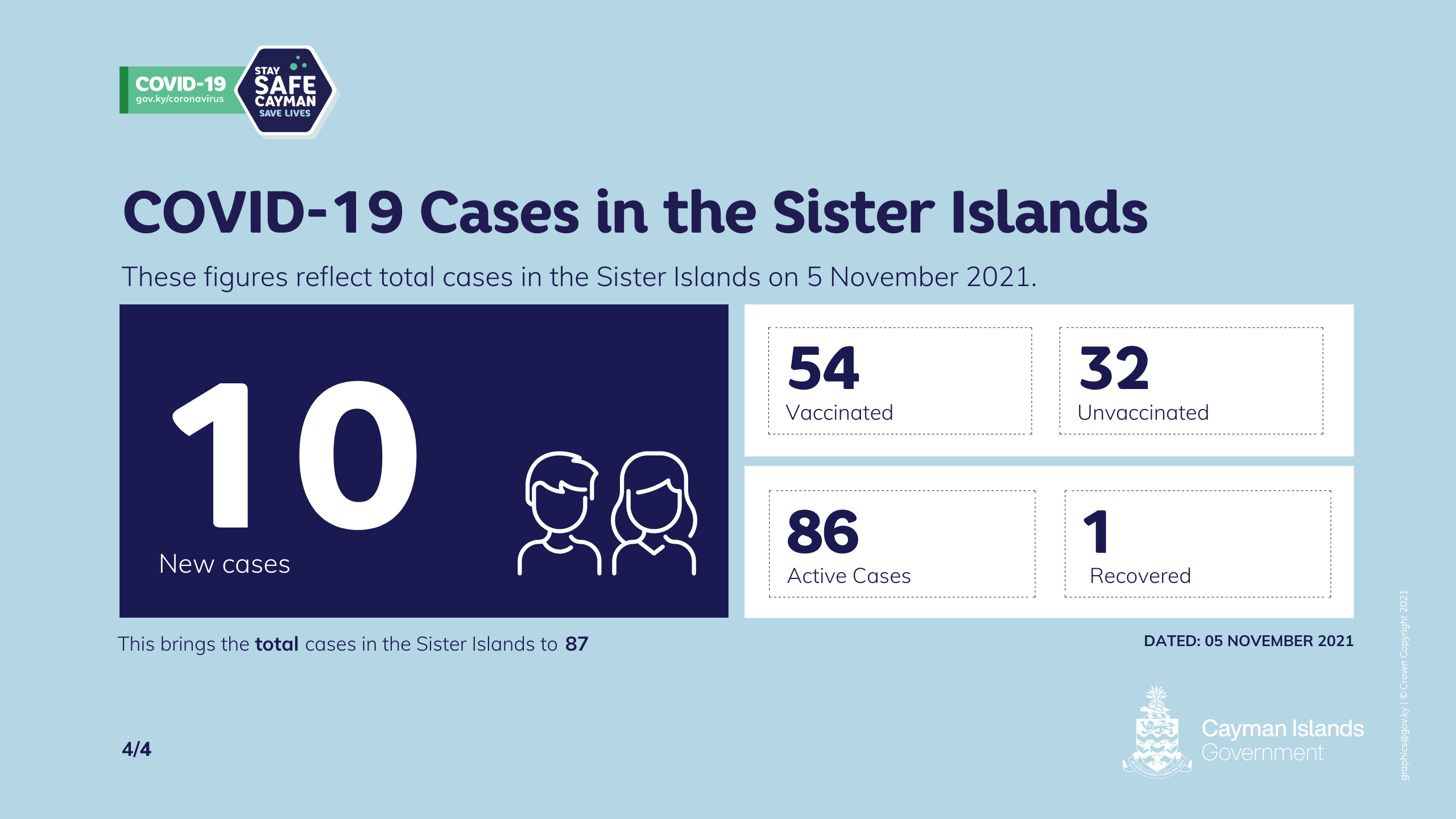 At 8 a.m. today Faith Hospital confirmed there were 86 active cases in the Sister Islands, with ten identified in the previous 24 hours. All new cases were from the community.