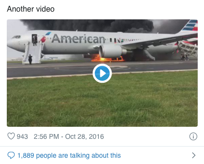 The four-minute, 12-second video shows flight attendants attempting to calm a distressed woman on board a plane. At the 40-second mark, the video then cuts to a video of passengers evacuating a burning American Airlines plane.