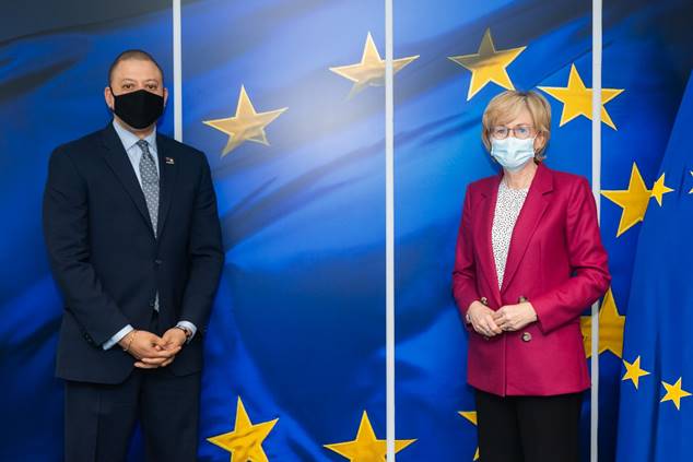 Minister André Ebanks discussed financial services matters with the European Commissioner for Financial Services, Financial Stability, and the Capital Markets Union, Mairead McGuinness.
