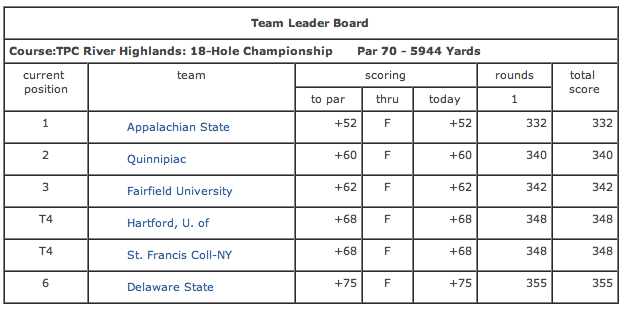 Jenn Whaley (Farmington, Conn.) finished the first day at +17 for a tie of 11th place while Alexa Gentile (No. Providence, R.I.) and Jenn Forlenza (Wayne, N.J.) shot 92 and 95, respectively.