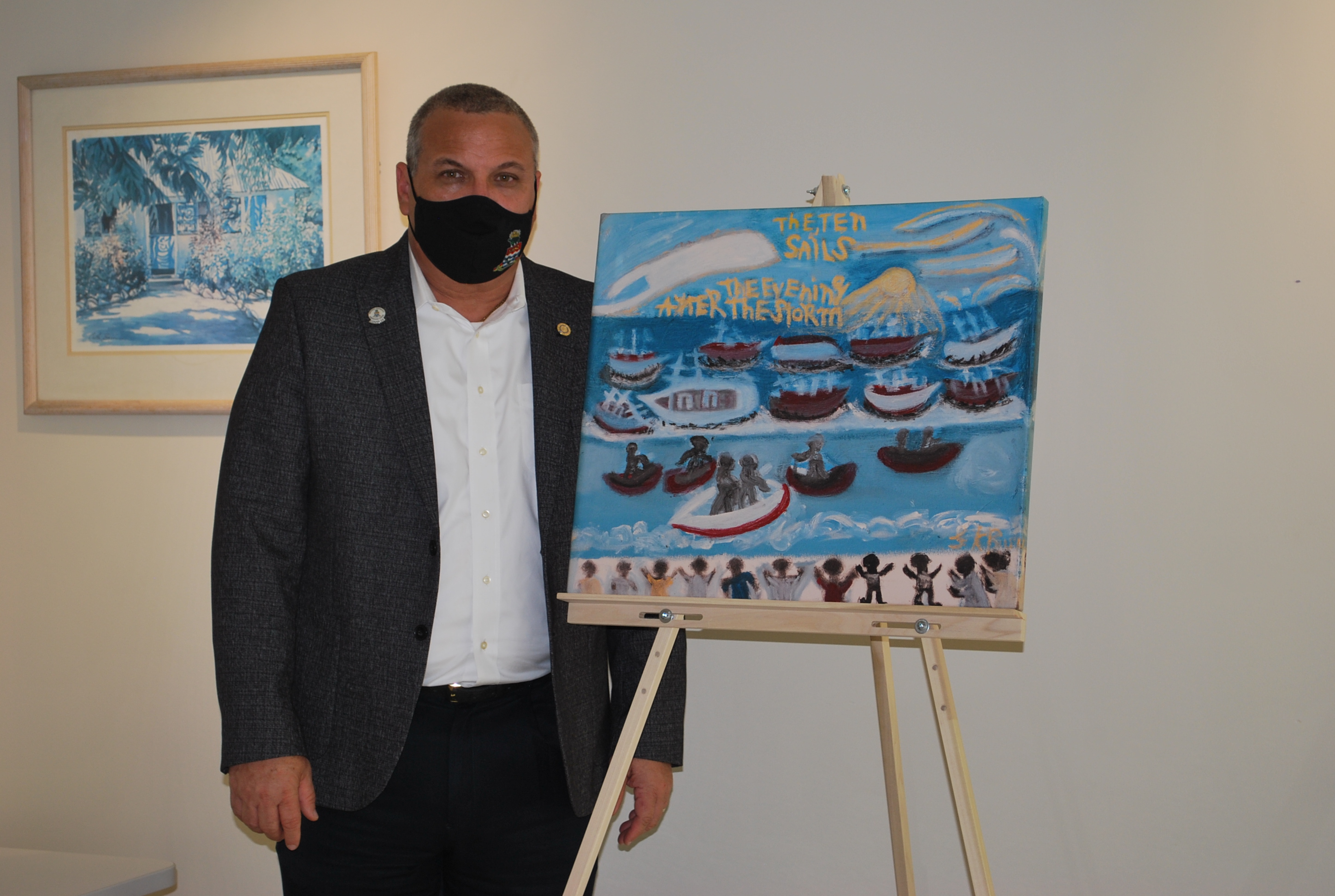 Grand Cayman, 6 December 2021 – Staff and visitors to the Government Administration Building in George Town are in for a rare treat from now until the first week of the New Year. Nineteen paintings of national significance are on display by visionary artist Miss Lassie, on the ground floor’s Cayman Gallery opposite Treasury, from 9a.m.- 5p.m, weekdays to Tuesday, 4 January 2022.