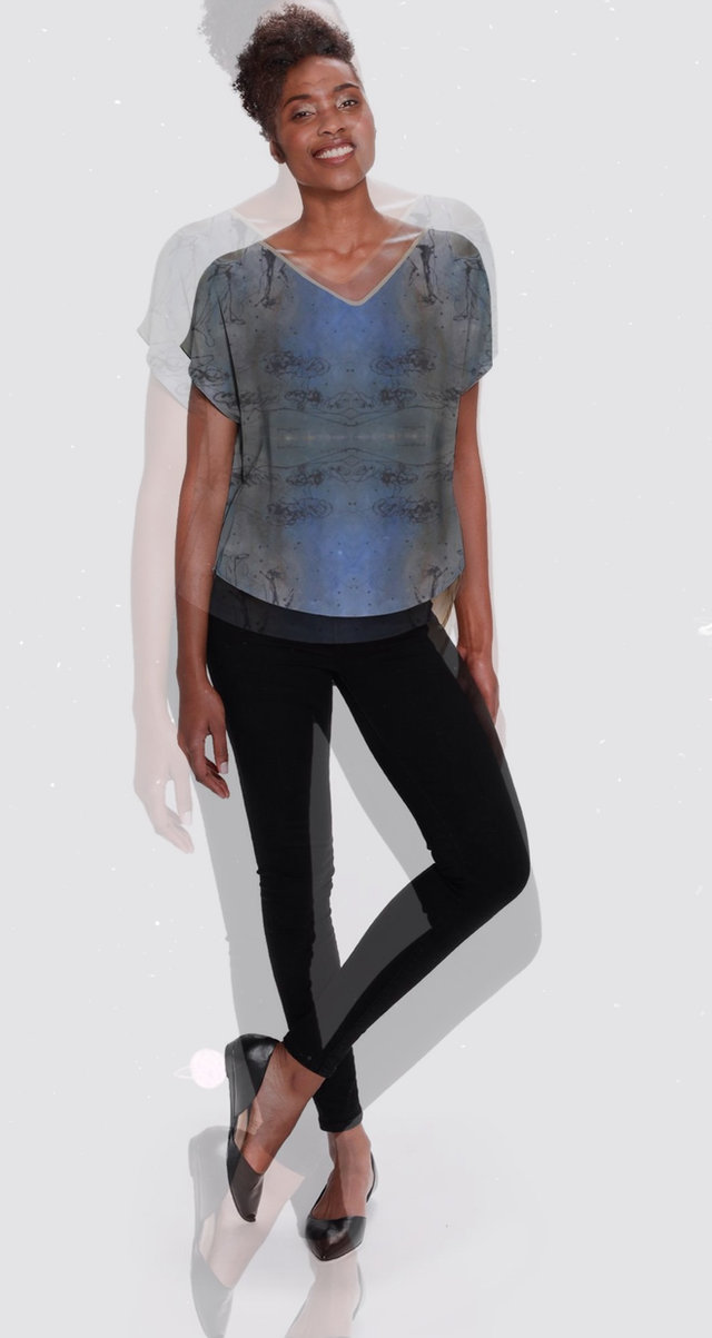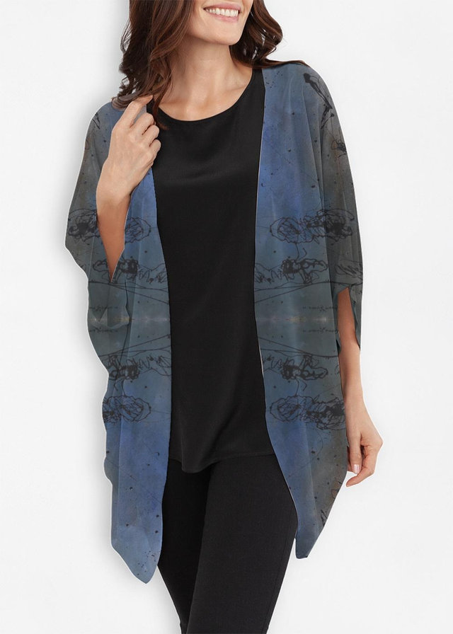 Sheer wrap, drapes gently over the shoulders, falling to a rounded hem.