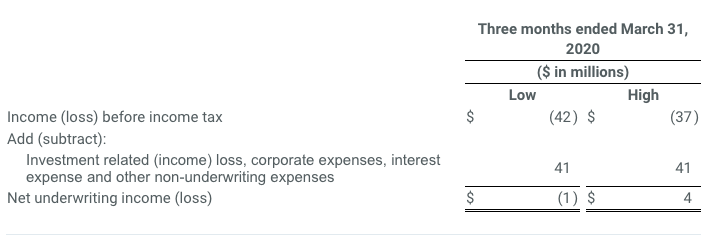 The reconciliations of estimated net underwriting income (loss) to estimated income (loss) before income taxes (the most directly comparable U.S. GAAP financial measure) on a consolidated basis is shown below: