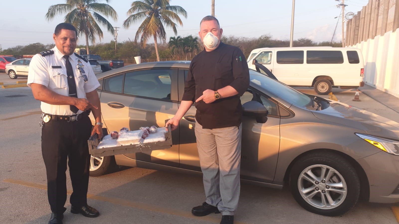 HMCIPS Supervisor Derron Brown (left) and Catering Manager Vinnie Rooney (right) ready for delivery.