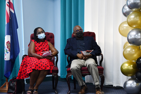 4. Dr Beverley Shirley from UWI Open Campus and Acting Chief Officer for Ministry of Home Affairs Julian Lewis look on as graduates receive awards during the ceremony.