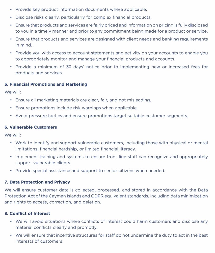 “Cayman’s retail banks play a central role in the financial well-being of our community,” said Richard Lewis, CIBA spokesperson. “This updated Code of Conduct strengthens our shared commitment to fairness, transparency, and accountability in every customer interaction.”