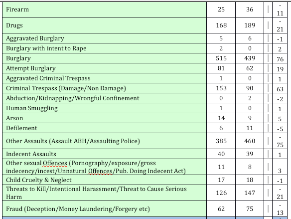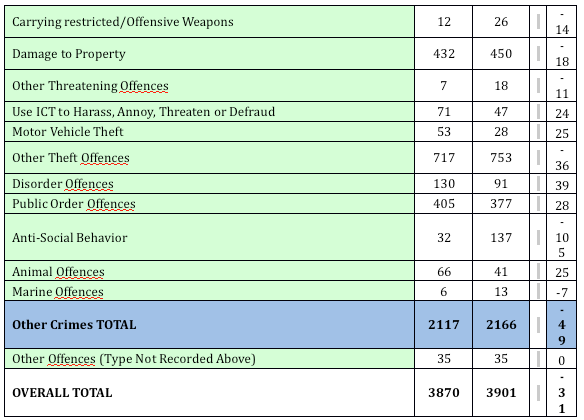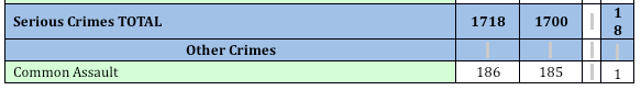 The Cumulative Statistics are grouped by “Serious” and “Other” Crimes, dispensing with earlier categories used such as “Volume” or “Violent” crime. These earlier terms carried distinctions that at times lacked clarity. Serious crimes can be defined as those that can carry significant custodial sentences, while those in the Other crimes category may carry no custodial sentence;