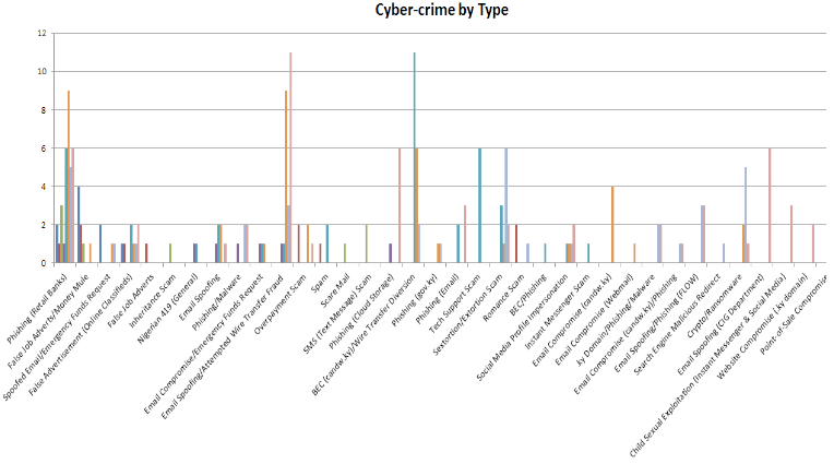 In 2010, cyber-crime incidents were extremely rare to non-existent. Cyber crime reports started to spike in 2014, and have continued to rise since that time. Cyber crime incidents are not included in the overall crime figures due to their variance and complexity. However, the below graphs (Figures 6 & 7) and information are being included in this document in order to begin to illustrate this area of criminal activity for the benefit of public awareness.