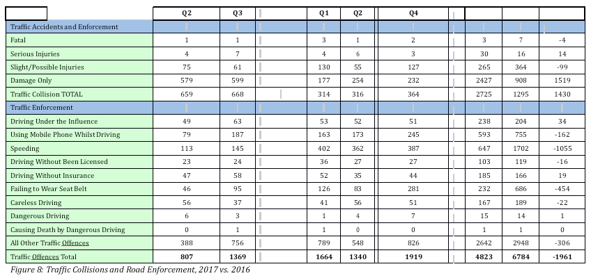 Figure 8: Traffic Collisions and Road Enforcement, 2017 vs. 2016