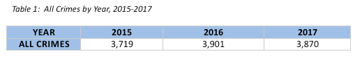 Table 1: All Crimes by Year, 2015-2017 – See Attached