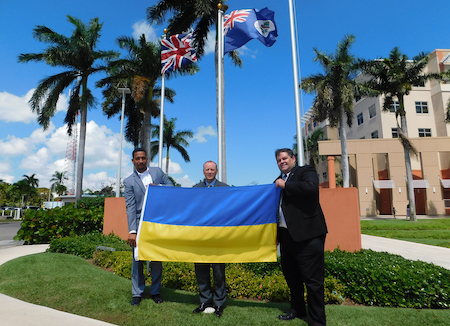 Grand Cayman, 1 March 2022 – The Cayman Islands joined the UK Overseas Territories earlier today in hoisting the Ukrainian flag, to fly alongside the Union Jack and the Cayman Islands National Flag at the Government Administration Building (GAB) on Elgin Avenue.