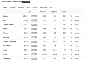 Generally, Government debt as a percent of GDP is used by investors to measure a country ability to make future payments on its debt, thus