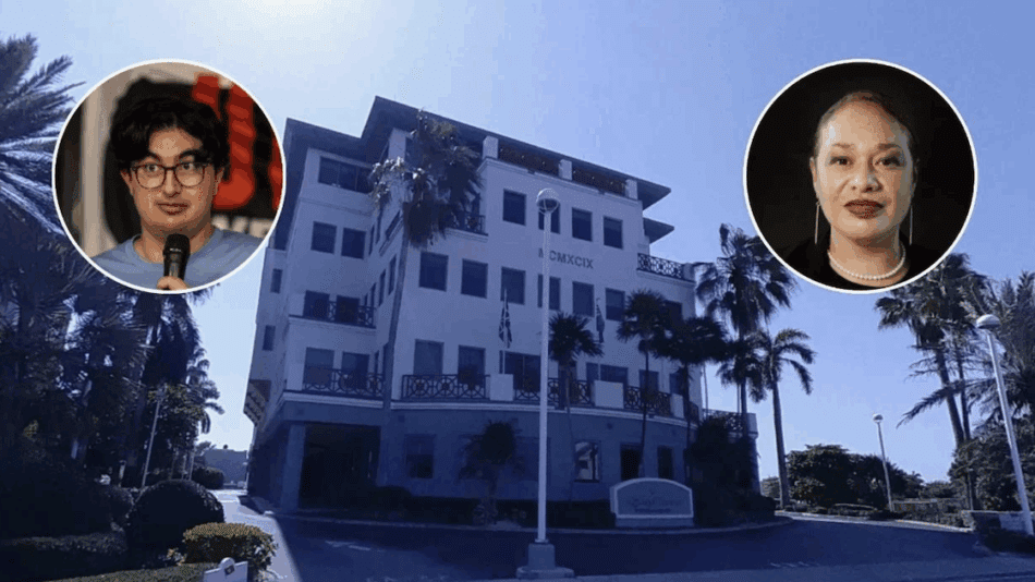 Ugland House in the Cayman Islands was the reportedly home of 12,000 corporations. Unions Wellington spokesperson Ashok Jacob, top left, raised questions about the alleged tax haven status while Wellington mayor Tory Whanau was open to bringing services in-house.