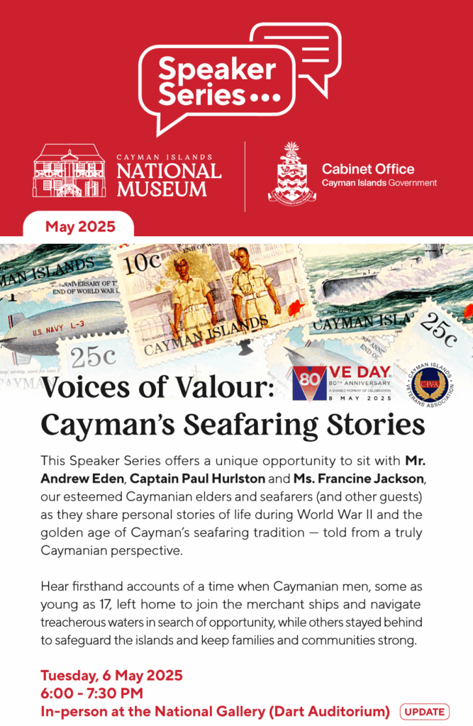 HomepageCaribbean NewsCayman Islands National Museum – Speaker Series – Tuesday, 6 May 2025 (6-7:30PM) Cayman Islands National Museum – Speaker Series – Tuesday, 6 May 2025 (6-7:30PM) Posted on April 22, 2025 RESERVE YOUR SPOT LEAVE A RESPONSE Cancel replyYour email address will not be published. Required fields are marked *Comment * Name * Email * Website Post navigation Previous PostDelivering Impact- Caribbean Export Unveils 2024 Annual Results Report Next PostCayman: MRCU Continues Operations as Mosquitoes Emerge