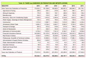 1.12 In 2015, total compensation of employees increased to CI$1,533.9 million or 50.1 percent of GDP; total operating surplus/mixed income reached CI$840.8 million or 27.5 percent of GDP; consumption of fixed capital was estimated at CI$188.0 million or 6.1 percent of GDP while total taxes on production and imports (less subsidies) was valued at CI$498.8 million or 16.3 percent of GDP.