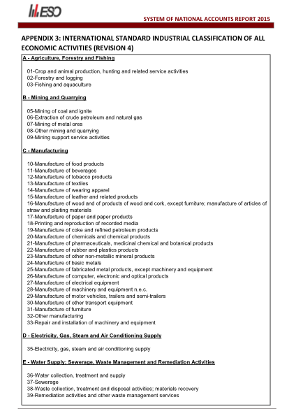 1.3 The concept of GDP for the economy as a whole is that it should measure the total GVA for all producers resident in the economy. The overall estimate of Cayman Islands’ GDP comprises the value added of 18 industries as classified using the International Standard Industrial Classification (ISIC) Revision 4. The data shown are the most recent estimates of GDP and include any revisions (to previously published data) due to revised figures obtained from businesses during the most recent Annual National Accounts Survey. In general, figures for the most recent year (2015) are to be regarded as preliminary.