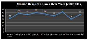 later than 30 calendar days after receiving a request. Response times went from the best median time