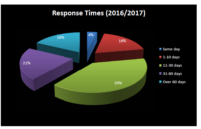 As well, 39% of requests were responded to outside the initial 30 day time limit compared to 34% in