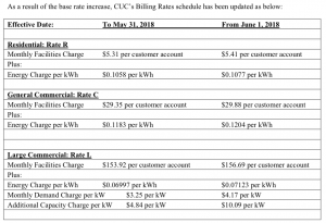 As a result of the base rate increase, CUC’s Billing Rates schedule has been updated. – see attached.