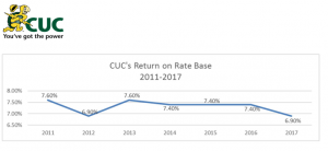 Upon review and confirmation of the CUC audited financial reports, the CI and US CPI reports, and the 2017 CUC Return on Rate Base of 6.9%, OfReg has approved the 1.8% Base Rate adjustment which is a result of applying an 80% factor to a 2017 US CPI increase of 1.8% and a 2017 CI CPI increase of 2.5% (both excluding food and fuel).