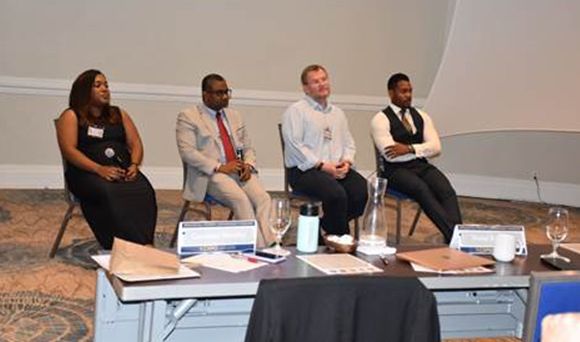 (From left to right) – CIIPO Director – Candace Westby, the Jamaica Constabulary Force’s Director of the Intellectual Property Rights Unit – Victor Barrett; Maples Partner Quentin Cregan, and Livingston, Alexander and Levy Partner – Mikhail Jackson during a panel discussion following the presentations at the Enforcement Training.