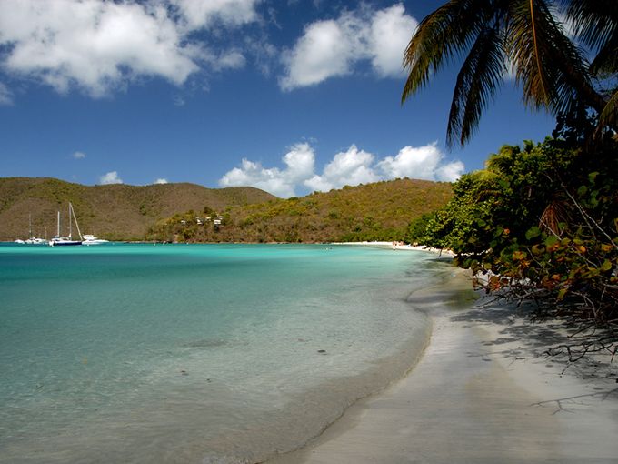 The majority of St. John, a U.S. Virgin Island, is protected as the Virgin Islands National Park, and the beaches within the preserve are ideal for nature lovers. Trunk Bay features a 225-yard underwater snorkeling trail with submerged signs that identify coral and fish. The more adventurous can take the nearly-mile-long Leinster Bay Trail to scalloped Waterlemon Bay and snorkel out to Waterlemon Cay to leave the crowds behind. Salt Pond Bay offers snorkeling for explorers and calm shallows for the kids.