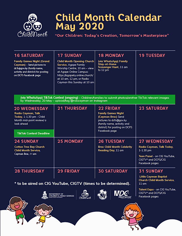 GRAND CAYMAN (GIS) – The Department of Children and Family Services (DCFS) is putting the final touches to a pared down Child Month, to maintain social distancing due to the COVID-19 outbreak. This year’s theme is “Our Children: Today’s Creation, Tomorrow’s Masterpiece.”