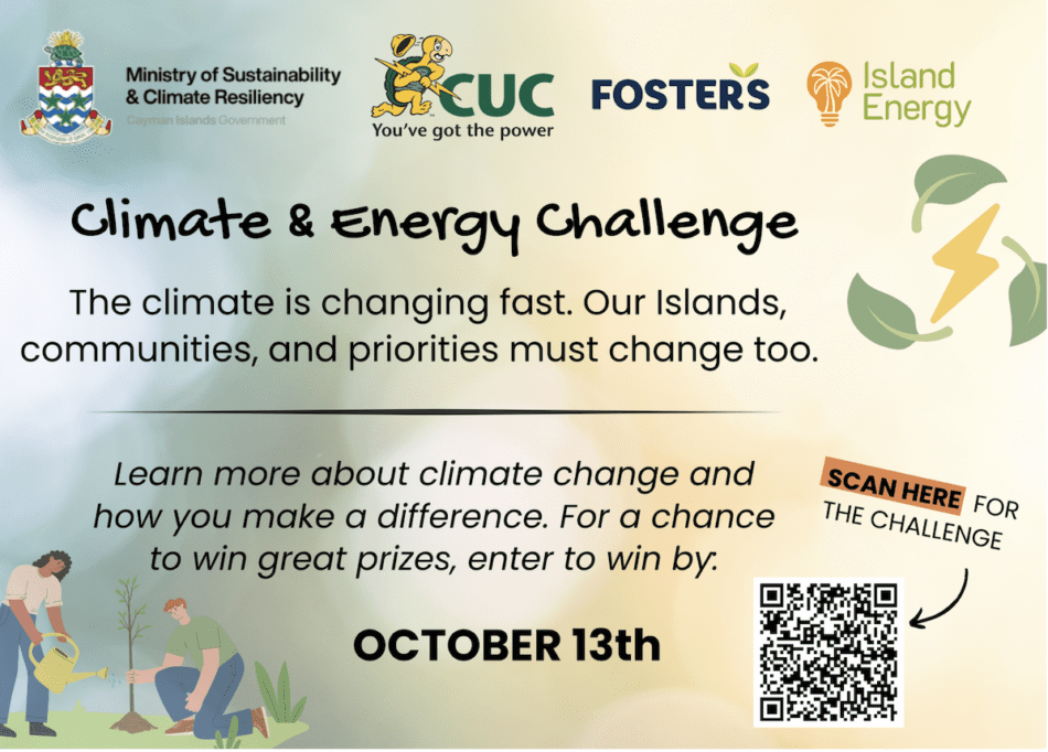 The Ministry of Sustainability & Climate Resiliency has launched a Climate & Energy Challenge to raise awareness in the public about climate change in the Cayman Islands and inspire residents to take action in their daily lives.