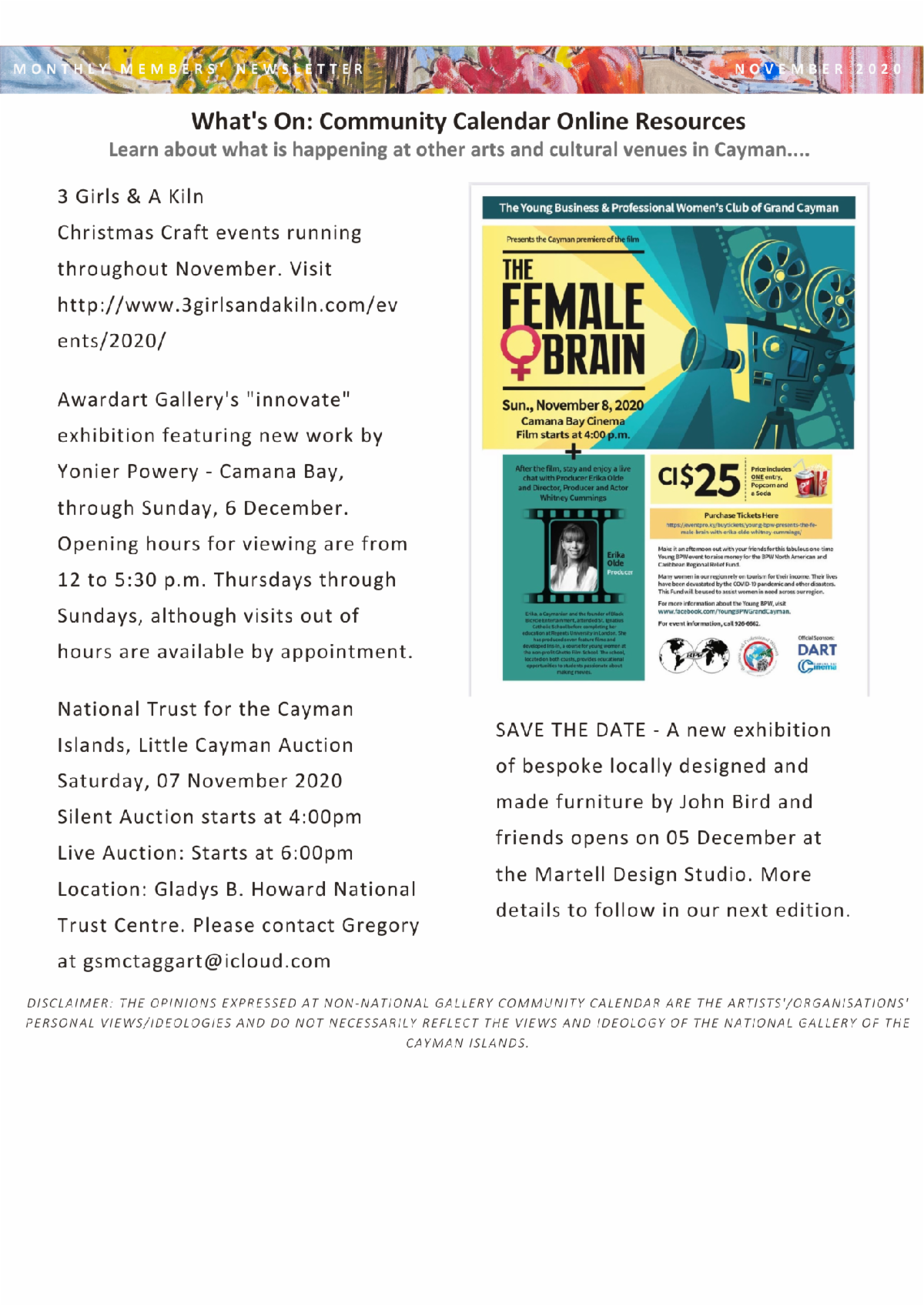 HomepageCaribbean NewsCayman: National Gallery News and Events! Cayman: National Gallery News and Events! Posted on November 5, 2020 Click here Click here LEAVE A RESPONSE Cancel replyYour email address will not be published. Required fields are marked *Comment * Name * Email * Website Post navigation Previous PostCayman: RCIPS Community Policing Unit wraps up primary school car wash initiative Next PostCayman: Tropical Storm Watch