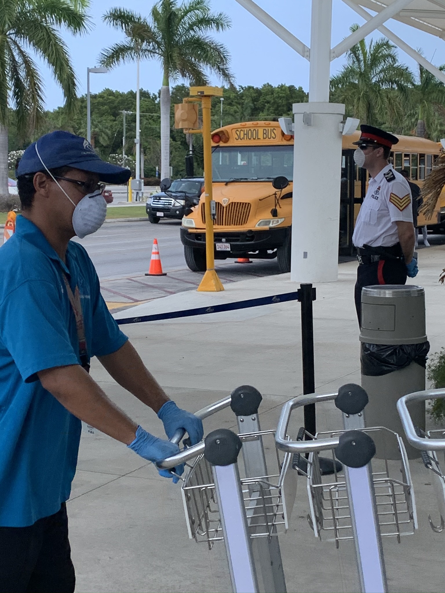 By the end of 6 June, different hotel sites had been operationalised as isolation facilities and each has had its own challenges. One of the biggest tasks was to ensure the risk of exposure to staff was managed and that there was no possibility of the public accidently coming into contact with those in isolation. Clear protocols around security and infection control required bespoke arrangements being put in place at each location, in line with advice from Health Services Authority, Public Health, the Department of Environmental Health and the newly formed Cayman Islands Regiment. Every flight was met by the NEOC ops team who co-ordinated with partner agencies and colleagues to ensure everything was in place to help both those leaving the country and facilitate those arriving and heading to isolation facilities.