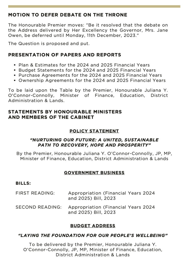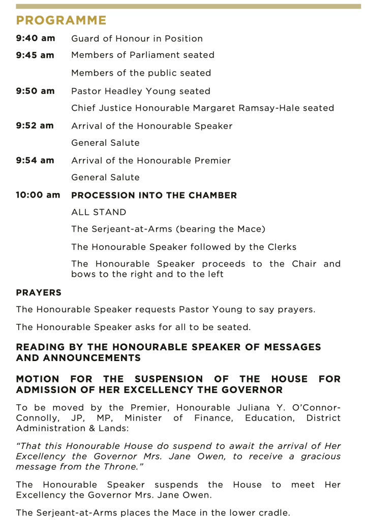 Cayman: Opening of Parliament/Second Meeting of 2023/2024 Session – Programme