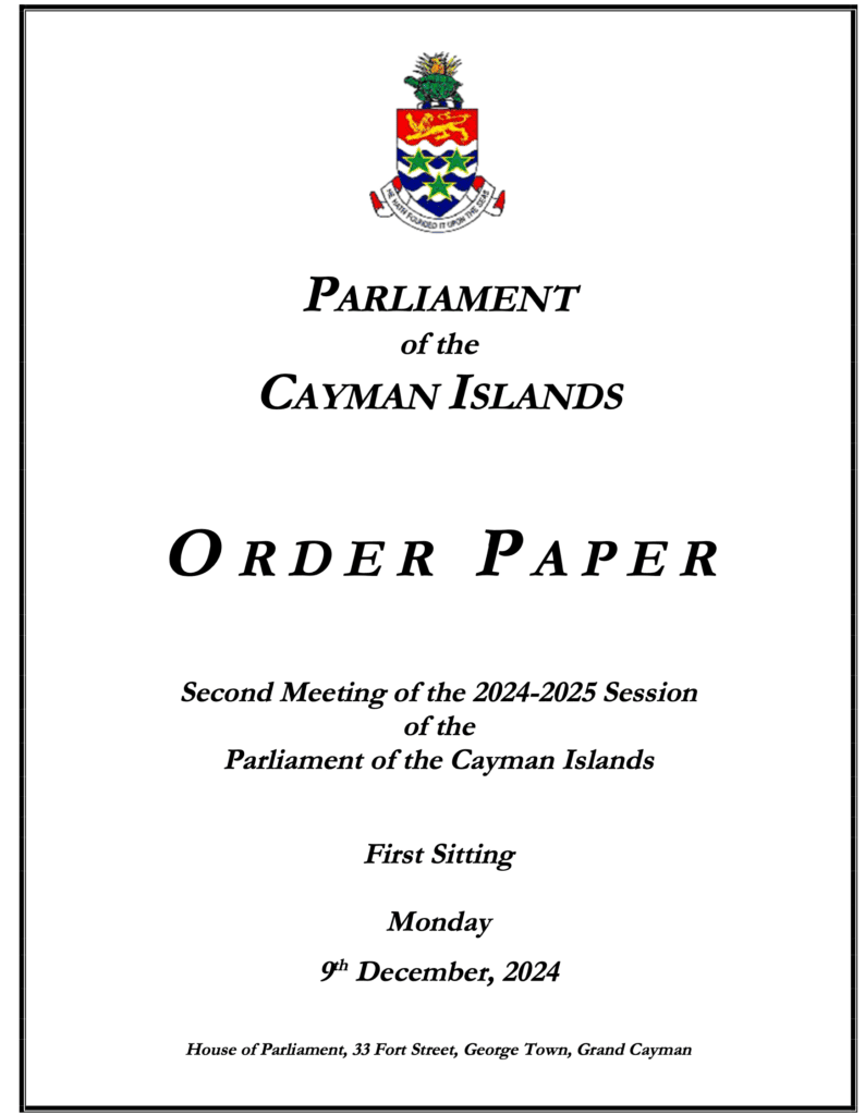 Cayman: Order Paper – First Sitting of the Second Meeting 2024-2025 Session – Monday, 9 Dec 2024