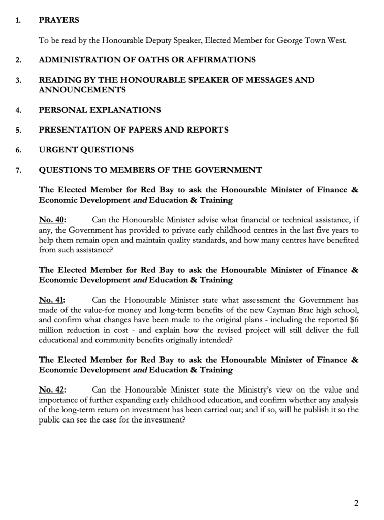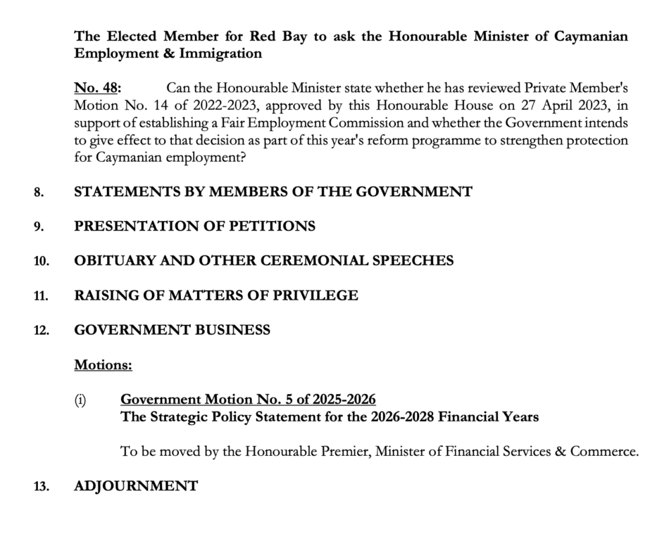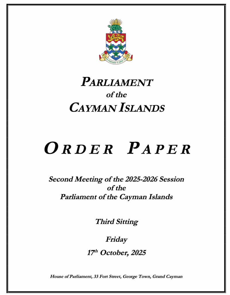 HomepageCaribbean NewsCayman: Order Paper – Third Sitting of the Second Meeting 2025-2026 Session Cayman: Order Paper – Third Sitting of the Second Meeting 2025-2026 Session Posted on October 17, 2025 LEAVE A RESPONSE Cancel replyYour email address will not be published. Required fields are marked *Comment * Name * Email * Website Post navigation Previous PostOpening Ceremony of the Olympic Winter Games Milano Cortina 2026 to be a celebration of Harmony Next PostILO strengthens Caribbean presence: Haiti joins the ILO Caribbean Office