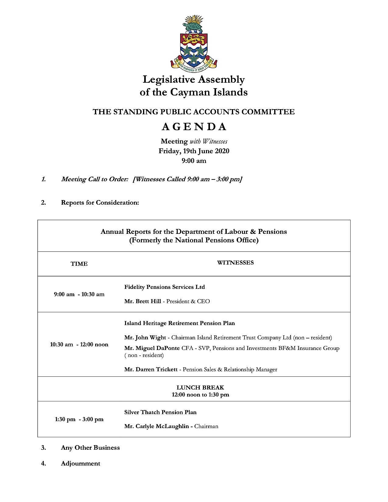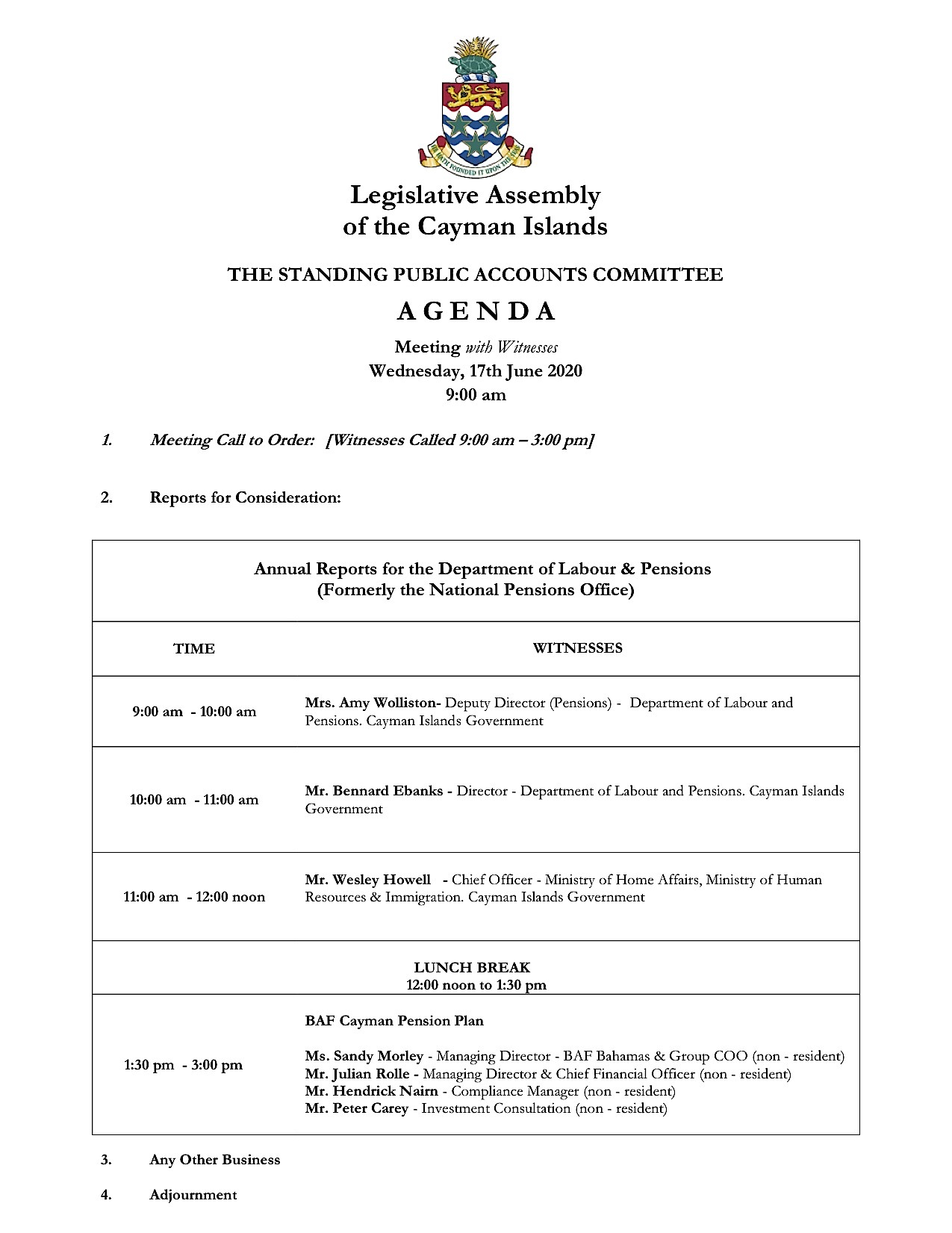 HomepageCaribbean NewsCayman: PAC Meetings Agenda June 17-19 Cayman: PAC Meetings Agenda June 17-19 Posted on June 17, 2020 See below for the agenda for PAC hearings this week: LEAVE A RESPONSE Cancel replyYour email address will not be published. Required fields are marked *Comment * Name * Email * Website Post navigation Previous Post17 Jun Weather in Cayman & Tropical Report – 1 dist. Next PostOECS recognises World Day to Combat Desertification and Drought 2020