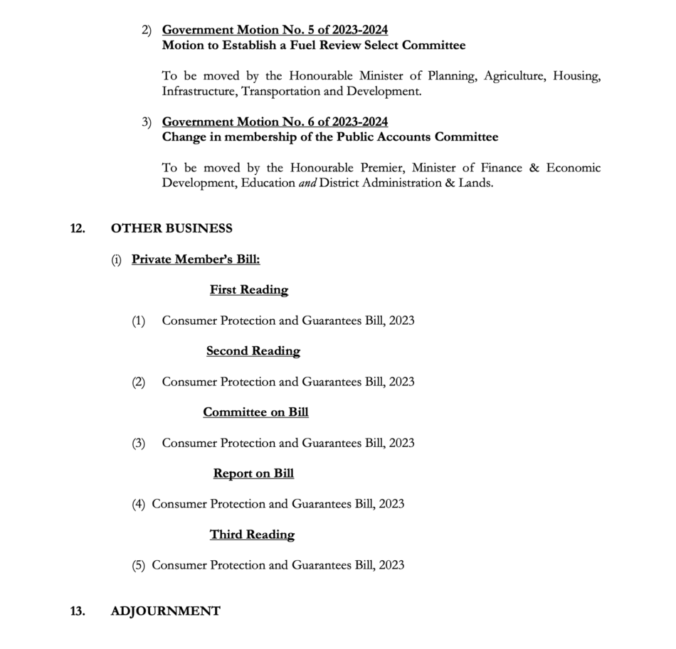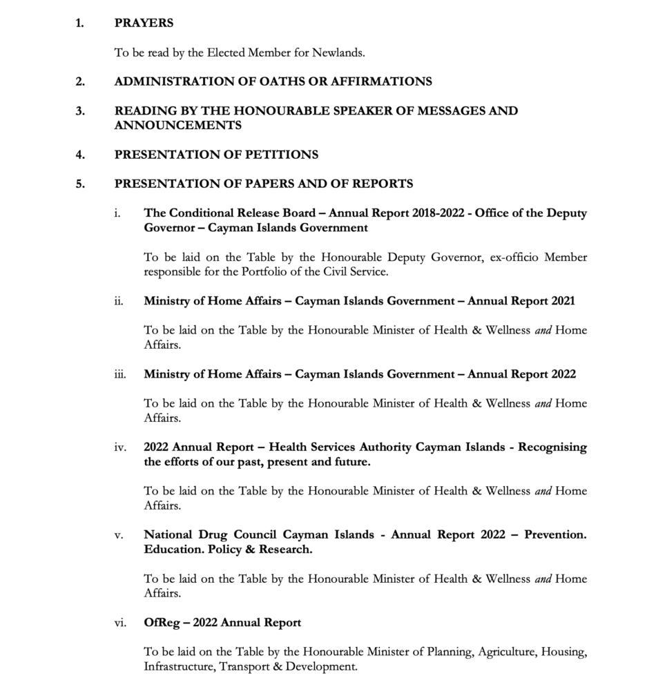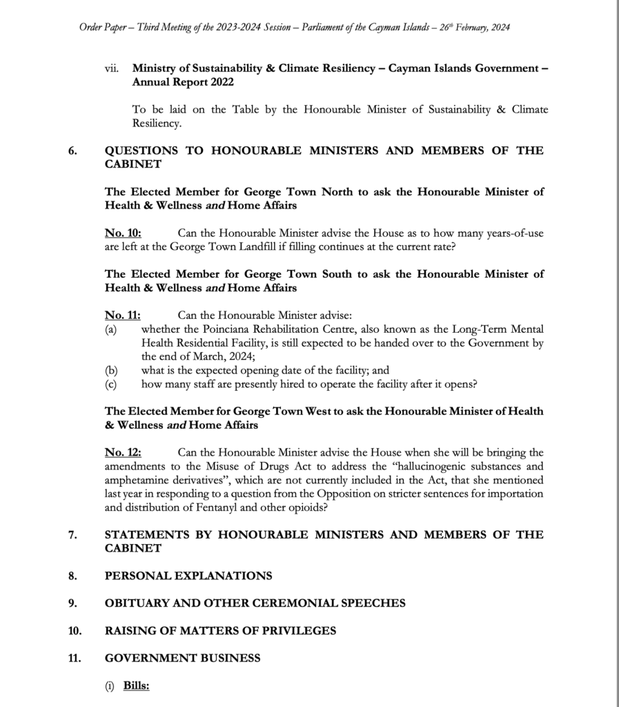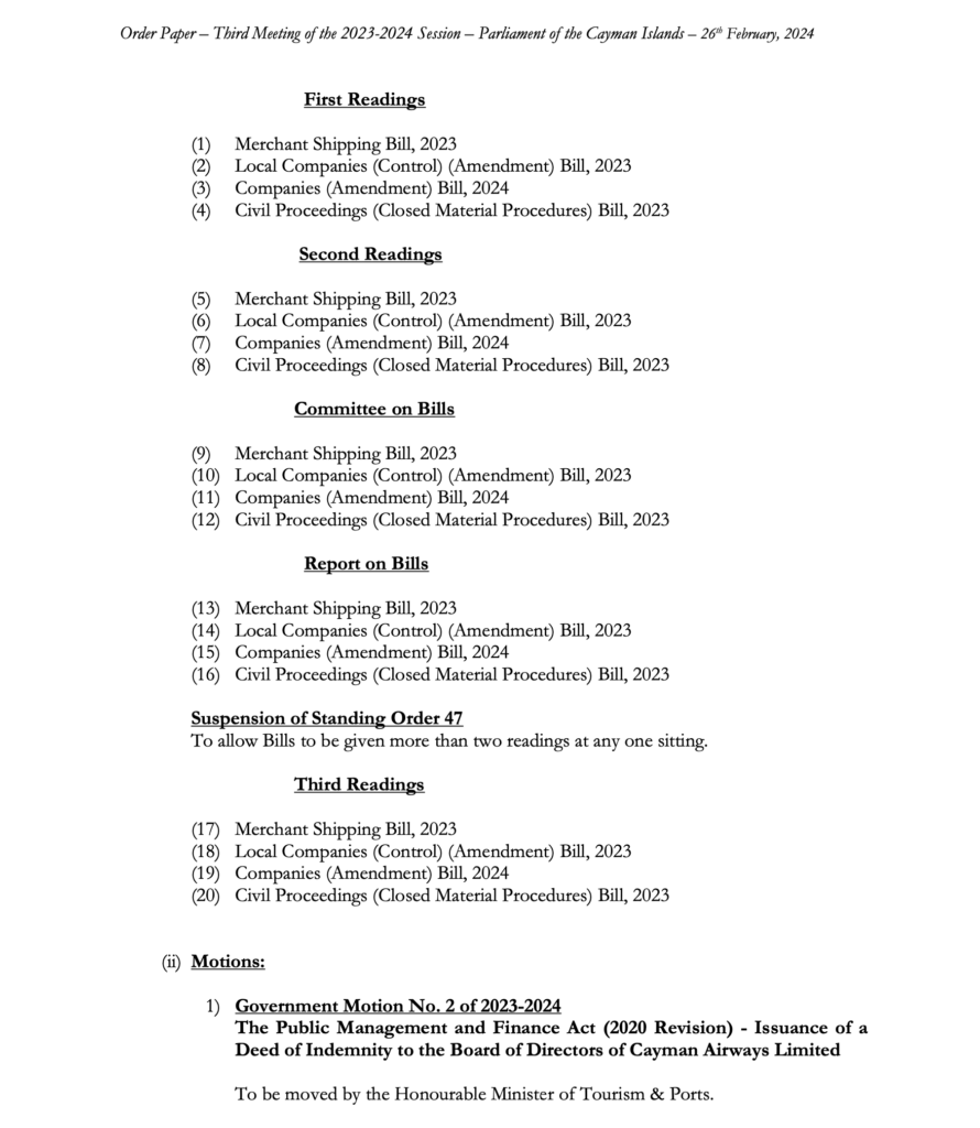 Cayman Parliament Order Paper | 1st Sitting 3rd Meeting 2023-2024 Session