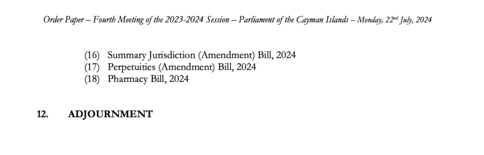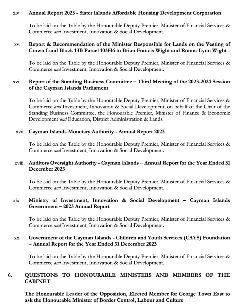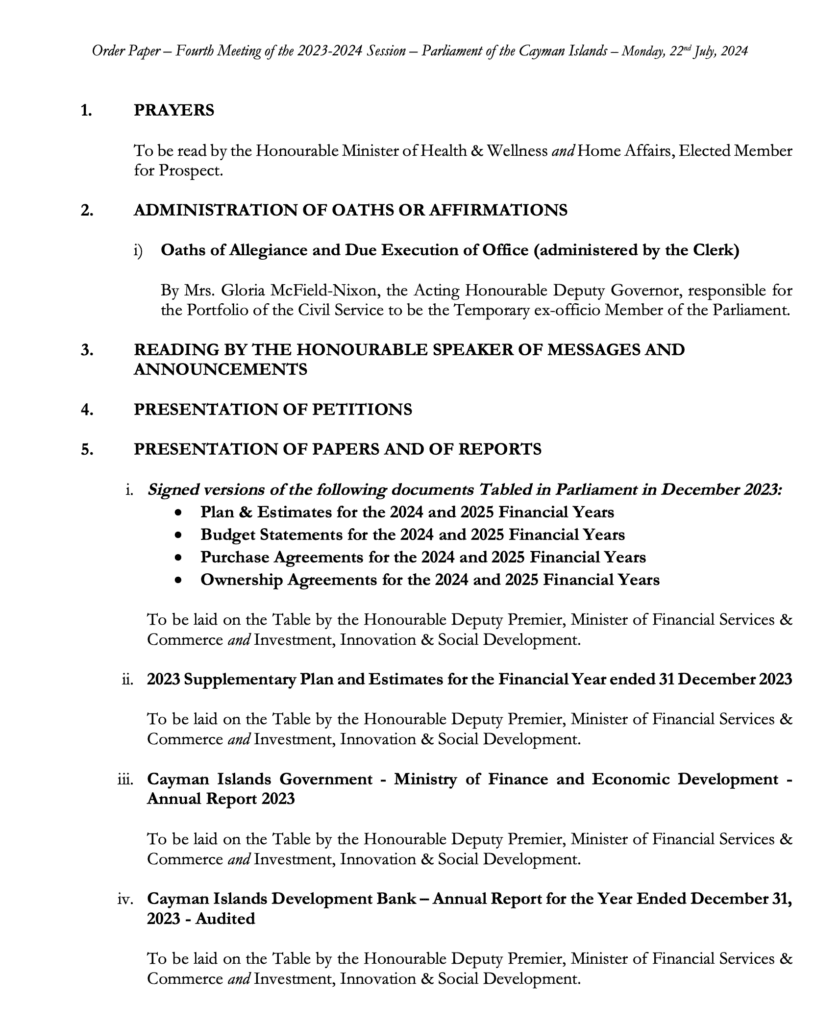 Cayman: Parliament Order Paper for First Sitting of the Fourth Meeting