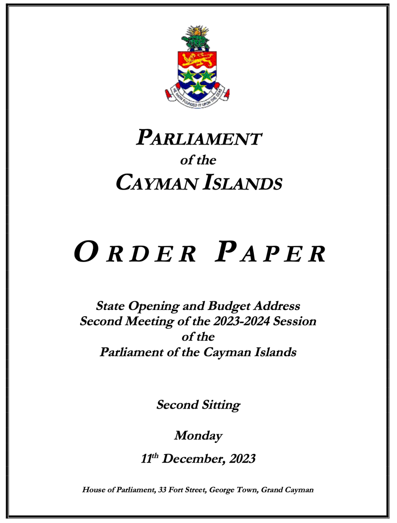 Cayman: Parliament Order Paper for Second Sitting | Second Meeting 2023-2024