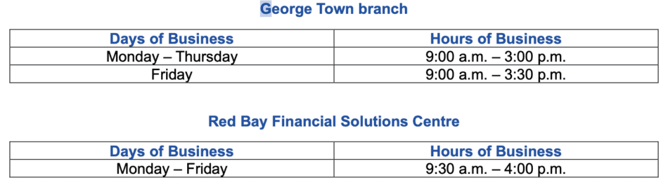 Cayman: RBC Announces Updates to Branch Operating Hours
