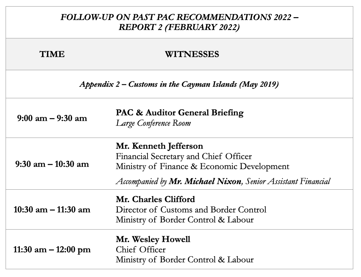 Cayman: Rescheduled PAC Hearings on Tuesday 3 May 2022