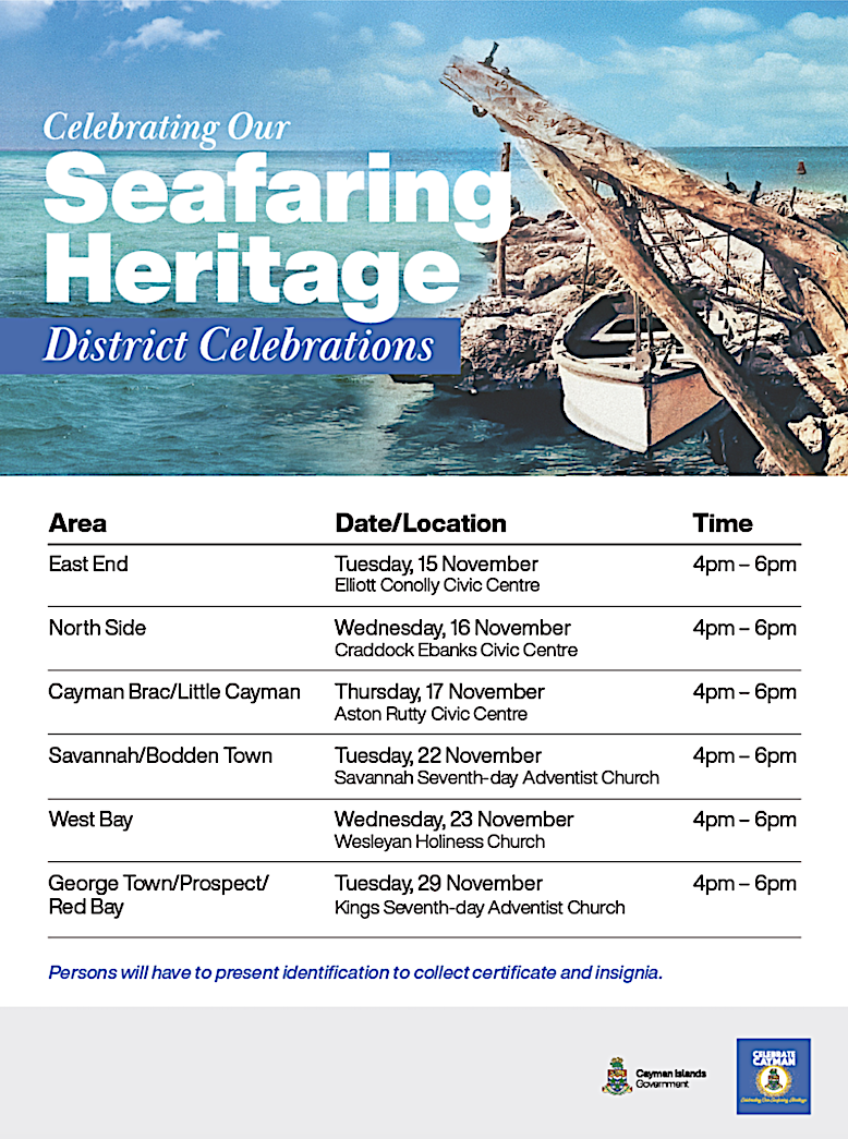 Grand Cayman, 11 November 2022 – Seafarers from the various districts throughout the Cayman Islands will be honoured at special celebrations from 15 – 29 November. Former pioneers of the seafaring industry, or their surviving loved ones, are invited to attend the celebrations in recognition of the nation building contributions made during their times of service.